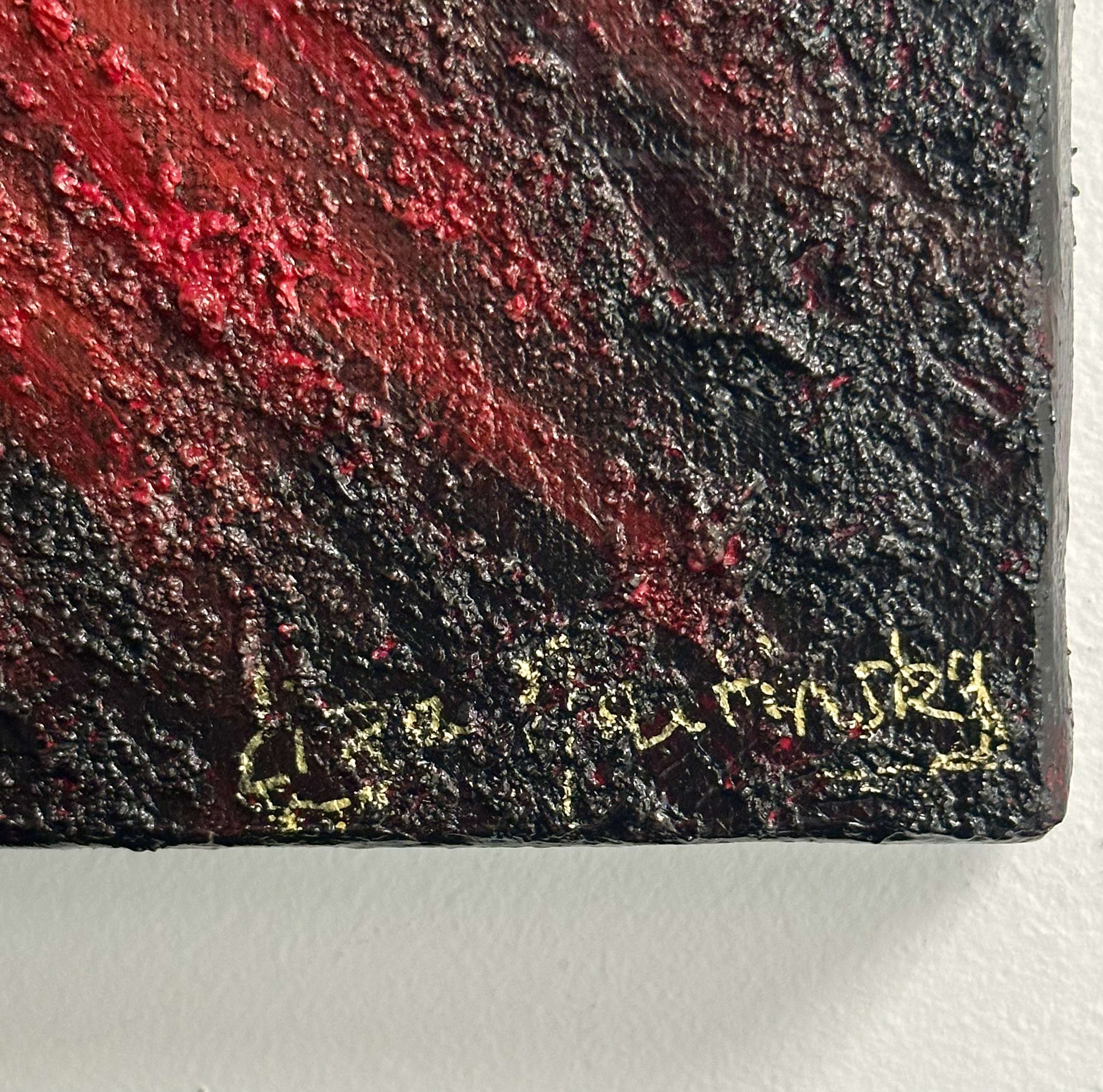 Œuvre originale unique signée livrée avec son certificat d’authenticité. Ce tableau est encadré dans une caisse américaine noire et or.
