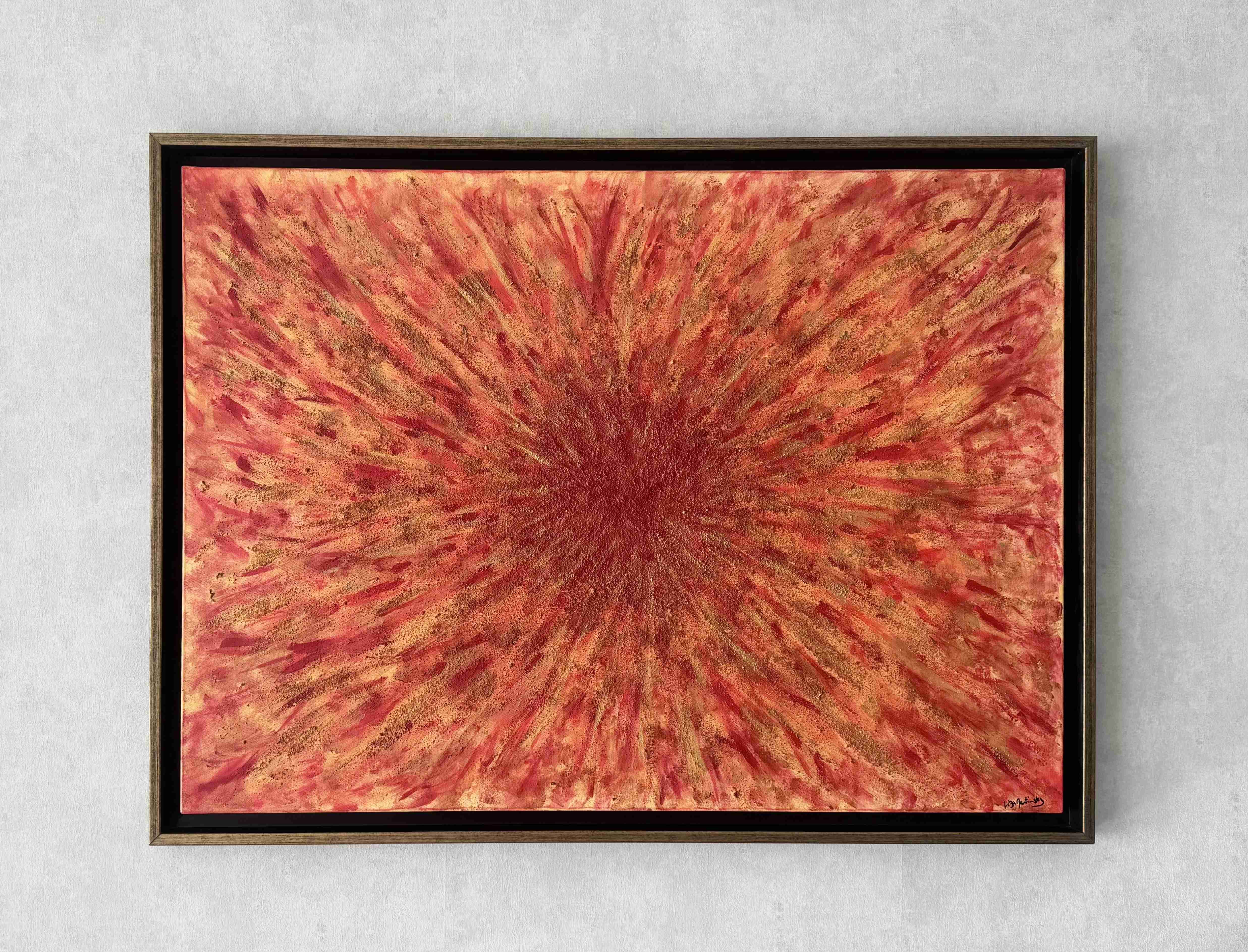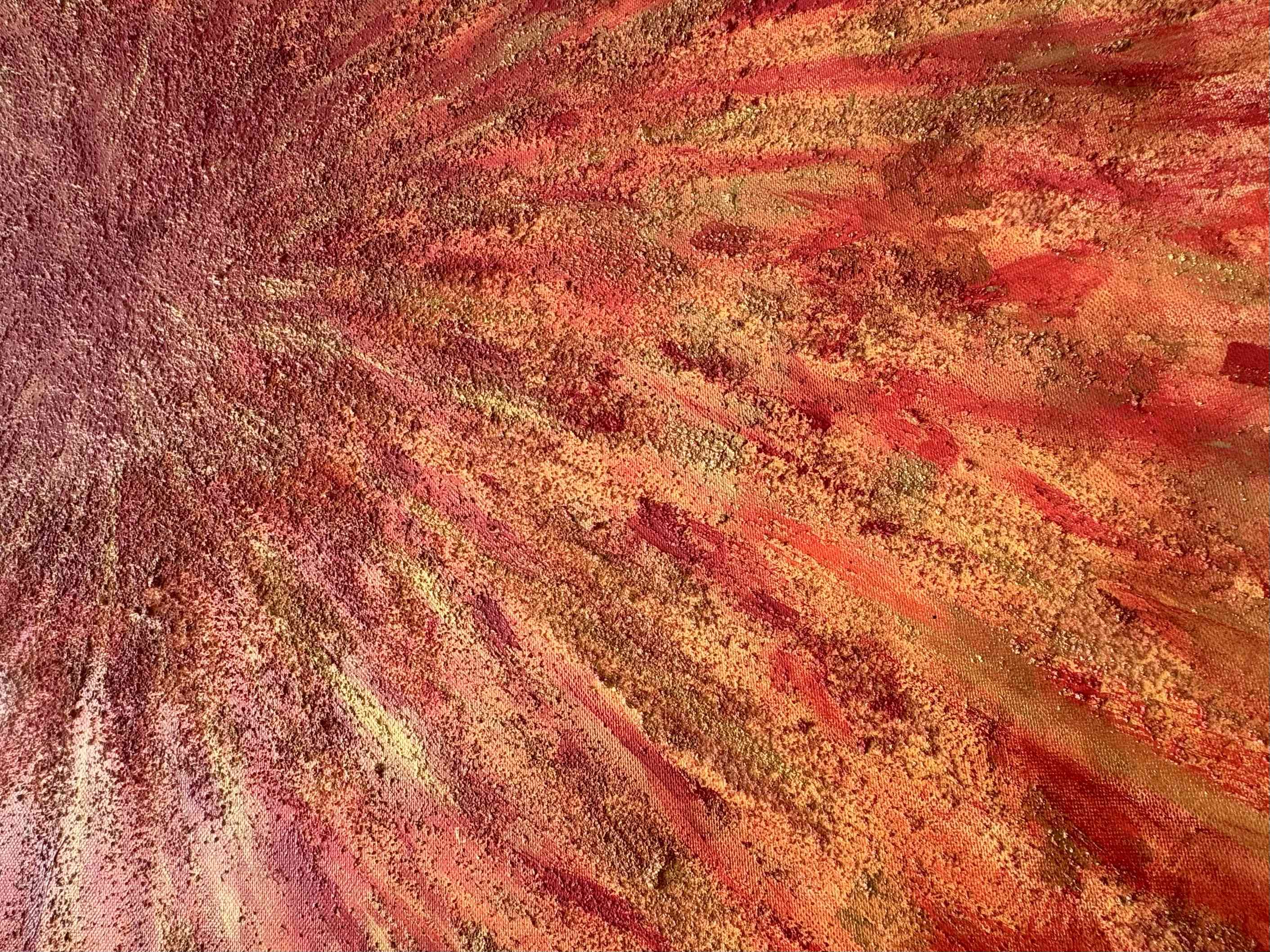 Les rouges et les ors s’entremêlent dans une danse incandescente pour devenir une explosion d’émotions.