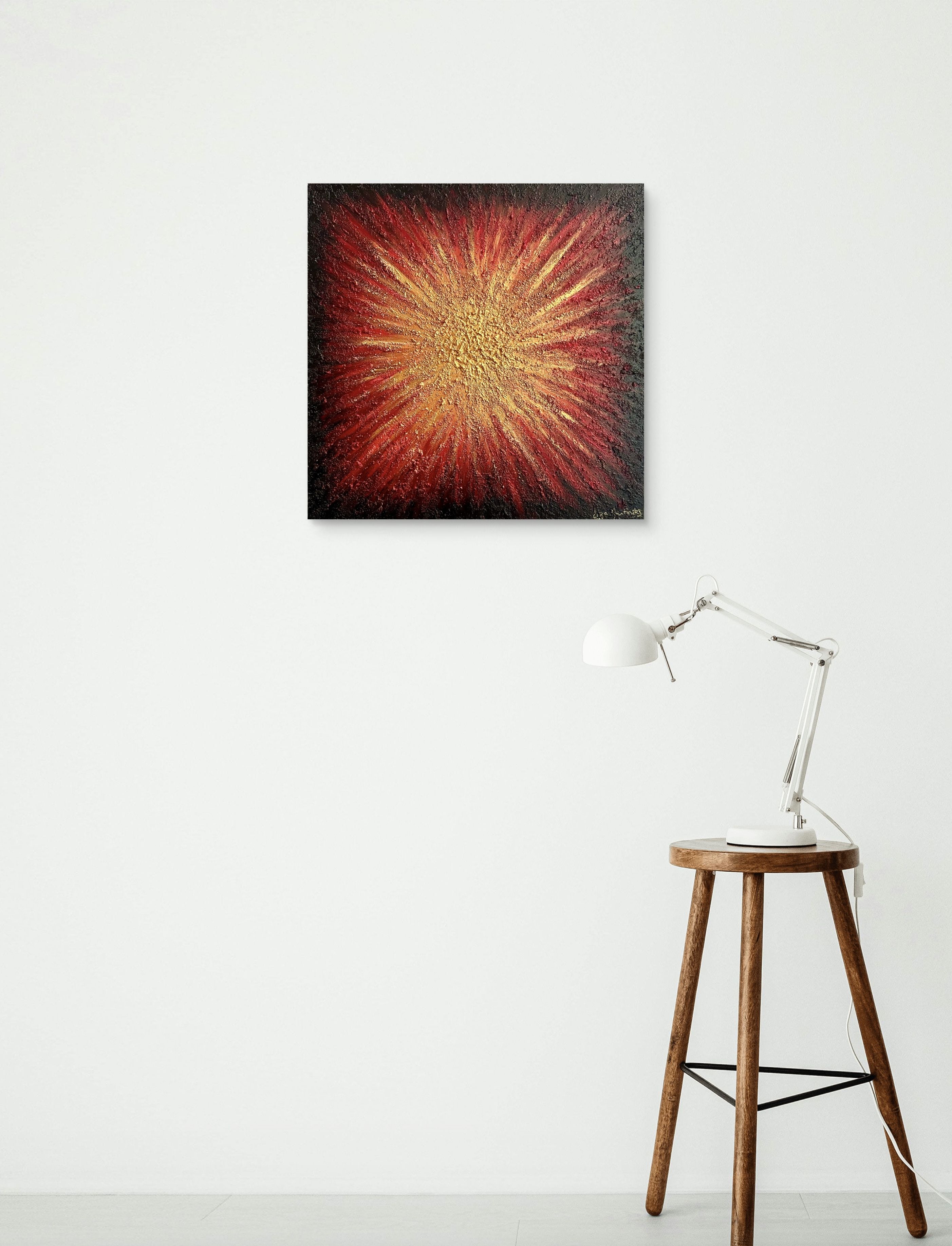 Œuvre originale unique signée livrée avec son certificat d’authenticité. Ce tableau est encadré dans une caisse américaine noire et or.
