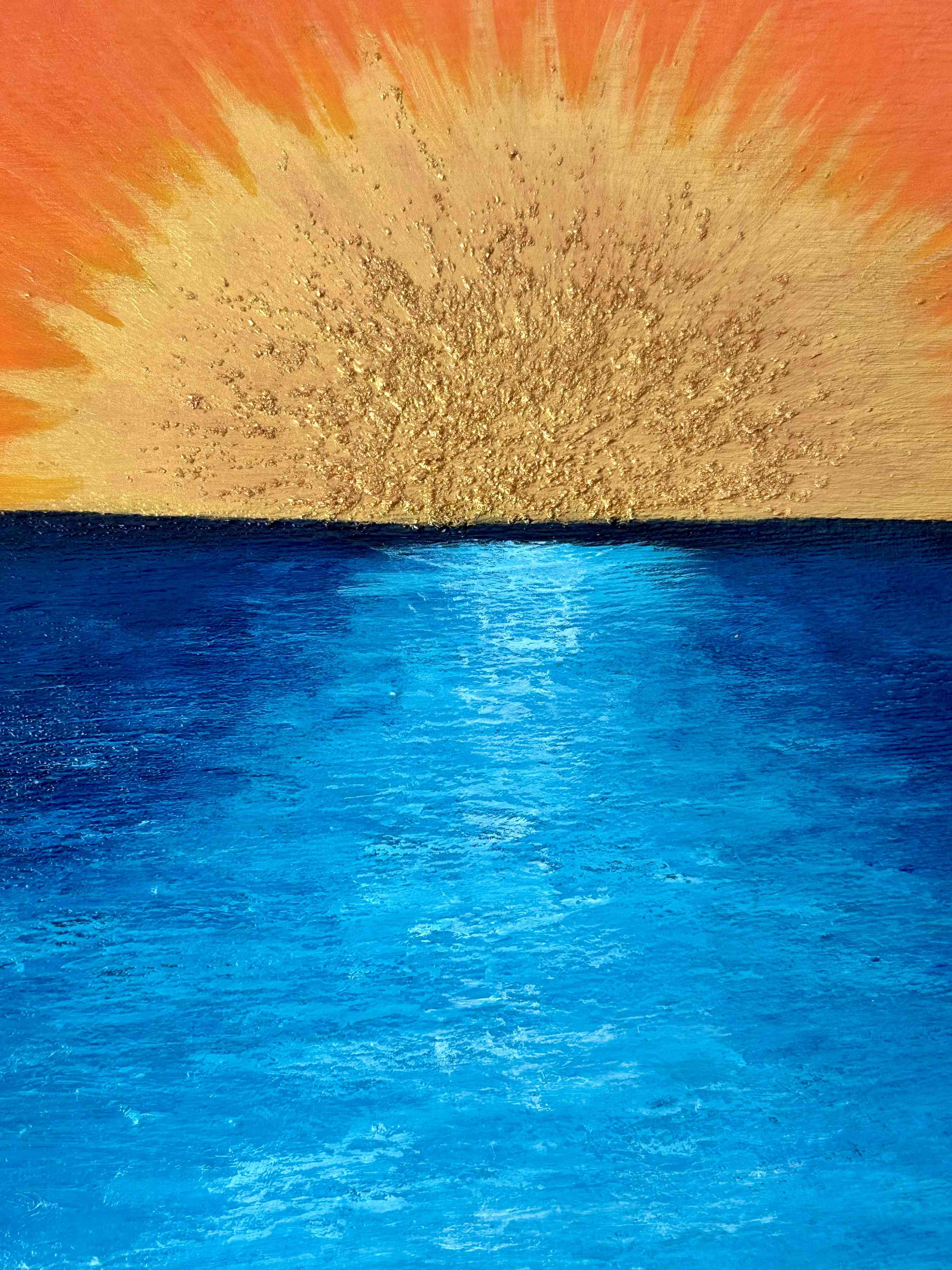 Tableau avec un magnifique coucher de soleil or.